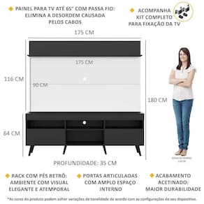 Produto Composto Por: 1 Rack, 1 Painel Para tv Com Prateleira, 1 Kit Com 6 (seis) Pés, 1 Kit Com Suporte Tv, Manual de Montagem E. Kit Ferragem.