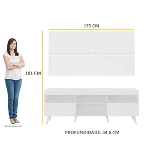 Produzido em MDP com pintura UV, que garante maior durabilidade e facilidade na limpeza, possui espaço para os equipamentos eletrônicos e nichos para objetos decorativos, além deduas portas articuladascom um amplo espaço interno para manter seus pertences organizados. Opainel para TV de até 65possui espaçamento para passagem dos fios, que permite deixar os cabos mais organizados. Devido as variações de tamanho dos televisores no mercado, sugerimos que verifique as medidas da sua TV e compare com o painel antes de efetuar a compra. Ospés palito, estilo retrô, em polipropileno, dão um charme especial ao móvel deixando-o com um visual leve e permitindo você compor um ambiente com ar vintage e moderno ao mesmo tempo.