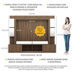 Rack c/ Painel TV 65" Prateleiras c/ Espelho Oslo Multimóveis Madeirado - Marrom