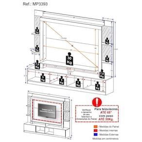 *Devido as variações de tamanho dos televisores no mercado, sugerimos que verifique as medidas da sua TV e compare com o painel antes de efetuar a compra.