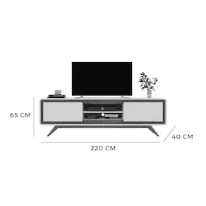Rack Channel 220cm para TV até 65 Polegadas 2 Portas Fabrimóveis O Rack Channel 220cm para TV até 65 Polegadas 2 Portas Fabrimóveis é inspirado em elementos de design moderno, ideal para complementar seu mobiliário, tornando o ambiente em que estiver muito mais luxuoso, proporcionando elegância e sofisticação. Aproveite!\nMEDIDAS\nAltura 65 cm\nLargura 220 cm\nProfundidade 40 cm\nCARACTERÍSTICAS\nFabricante Fabrimóveis\nModelo Rack Channel 220cm\nGarantia 3 meses\nTipo de produto Rack para TV\nAmbiente Sala de Estar\nEstrutura MDF\nEstilo Moderno\nQuantidade de Portas 02\nIdeal para TVs de até 65 Polegadas\nQuantidade de Gavetas Não Possui\nQuantidade de Pés 04\nTipo de Pés Pés Usinados\nTipo de Porta Basculante\nNecessita Montagem Sim\nAcompanha Manual de Instalação Sim\nINFORMAÇÕES IMPORTANTES\nObjetos decorativos que porventura apareçam na foto, não acompanham o produto. Não nos responsabilizamos pela montagem/instalação dos produtos.\nMontagens, desmontagens e instalações são responsabilidades do cliente. Indicamos que contrate uma empresa de montagem ou um montador de sua confiança.\nAlém disso, favor verificar se os pés e acessórios estão dentro do forro inferior do produto. Em suma, todas as informações divulgadas sobre o produto são de responsabilidade do Fabricante.\nAs cores do produto podem variar de acordo com o seu monitor, a iluminação do ambiente em que você está e até mesmo a sua percepção visual. Além da cor, pequenos detalhes e acabamentos podem não ficar evidentes na foto, por isso as imagens são meramente ilustrativas.