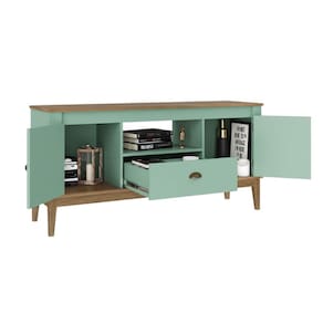 O rack para TVs de até 60 polegadas MB 1015 possui estrutura em MDP 15mm e acabamento em pintura UV. Costas 3mm. Possui 2 portas de bater com dobradiças metálicas e puxadores ponto metálicos e 1 gaveta com corrediça telescópica, puxador concha metálico e que suporta 5kg. Produto possui 4 pés em madeira maciça com altura de 20cm. Tampo em MDP 15mm. Produto suporta até 25kg. Conteúdo da embalagem: móvel, ferragens e manual de montagem. A fixação das peças e/ou acessórios é feita por parafusos, cavilhas e minifix. Para uma limpeza mais efetiva, utilizar apenas pano macio umedecido e sabão neutro. Não utilizar produtos abrasivos. Garantia de 03 meses contra defeitos de fabricação. Medidas do produto (AxLxP): 66x135x38,5cm. Peso do produto: 31,5kg. Marca: Não Informado