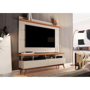 Rack Com Painel 1.60 TV Até 65 Retrô Pés De Madeira Gavetas Nichos Prateleira