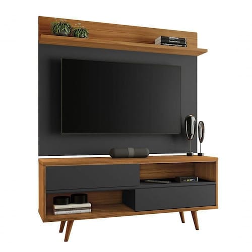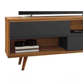 O Rack e Painel Assimério - Moveisaqui, aposta na assimetria para trazer elegância e charme a sua sala de TV. Atemporal, irá abrilantar seu ambiente. O rack, possui um estilo retrô, com duas portas deslizantes contrbui para a orgazição dos itens do seu dia a dia. E o painel, possui uma prateleira superior para o apoio de decoração.