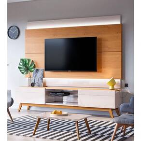 Rack Com Painel Classic 2g Nature Com Off White - Imcal Móveis Para complementar o charme e a sofisticação do seu ambiente, apresentamos o Rack com Painel Classic 2G - Imcal Móveis! A linha Classic foi elaborada para oferecer conforto, comodidade e beleza para toda a família. Produzido em MDP e MDF que oferecem resistência e durabilidade ao móvel, esta peça é perfeita para organizar e decorar o seu ambiente, com duas gavetas de corrediças telescópicas e uma prateleira em vidro temperado, possui espaço para acomodar itens pessoais, objetos de decoração e aparelhos eletrônicos, mantendo tudo muito bem ões do Painel Montado:Altura: 128 cmLargura: 180 cmProfundidade: 6 cmDimensões do Rack Montado:Altura: 52 cmLargura: 180,2 cmProfundidade: 40,3 cmObservações:- Estrutura em MDP/MDF;- Corrediças telescópicas;- Pé em madeira maciça;- Ideal para TVs de até 65 polegadas;- Pintura Ultravioleta com acabamento brilho na cor off white;- Pintura Ultravioleta com acabamento fosco na cor nature. Marca: Não Informado
