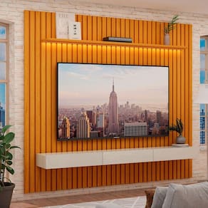 Rack Com Painel Para Sala Ripado Cleann 2.2 Naturale Com Off White - Moveisaqui O Rack com Painel para Sala Ripado Cleann 2.2 Naturale com Off White da MoveisAqui é a escolha perfeita para criar um espaço de entretenimento atraente e funcional na sua sala de estar. Seu design ripado e a combinação de cores naturale e off white adicionam um toque de elegância ao ambiente. O rack oferece espaço amplo para acomodar seus aparelhos eletrônicos, enquanto o painel fornece um suporte sólido para a sua TV. Com detalhes bem trabalhados e qualidade de construção, este conjunto é uma adição impressionante à decoração da sua sala.Dimensões do Produto montado:Altura: 217 cmLargura: 228,8 cmProfundidade: 35,3 cmObservações:- Gavetas com corrediças telescópicas;- Painel com ripas de verdade;- Com LED- Prateleira superior;- Ideal para Tvs de até 75 polegadas;- Pintura ultravioleta com acabamento amadeirado na cor naturale;- Pintura ultravioleta com acabamento brilho na cor off white. Marca: Não Informado