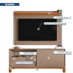A Bancada Mondrian da Caemmun é a combinação perfeita entre design moderno e funcionalidade. Com 1,5 m de comprimento, oferece amplo espaço para acomodar sua TV de até 55 polegadas e outros eletrônicos. A gaveta proporciona organização e a porta de correr microrripada dá aquele toque de sofisticação. Seus pés cavalete com base elevada garantem um visual leve e contemporâneo, complementando qualquer ambiente. Produzida em MDP de alta qualidade, oferecendo durabilidade e resistência. Produto Montado: Sim Acabamento: Pintura Acabamento da Gaveta: Pintura Acabamento da Porta: Pintura Texturizada UV Acabamento da Prateleira: Pintura Altura do Painel: 108 cm Altura do Rack: 61,9 cm Altura dos Pés: 5 cm Altura Máxima dos Pés: 5.0000 Ambiente Principal: Sala de Estar codigo_ean: 7900288159069 Complexidade da Montagem: Média: pode ser montado por mais de uma pessoa e/ou necessite de maior conhecimento para montagem Cor: Freijó Cor do Produto: Freijo Escala de Brilho: Fosco Escala de Brilho da Porta: Fosco Escala de Brilho da Prateleira: Fosco Espessura do Painel: 17,5 cm Espessura do Tampo: 15 mm Fixação na Parede: Sim Gaveta com Chave: Não Ideal para TVs até (Polegadas): 55 Itens Inclusos: 1 Rack, 1 Painel, Kit Ferragens e Manual de Montagem Largura do Painel: 150 cm Largura do Rack: 150 cm Linha ou Coleção: Mondrian Manual de Montagem e Instalação: https://product-hub-prd.madeiramadeira.com.br/224434900/documents/a028faf8-b50b-4ea6-bcbc-c55f42b32a4d2879068559517455979054163.pdf Marca: Caemmun Material da Gaveta: MDP Material da Porta: MDP Material da Prateleira: MDP Material dos Pés: MDP Material Principal: MDP Necessita Montagem: Sim Origem do Produto: Nacional Peso do Painel: 20,2 kg Peso do Rack: 31,6 kg Peso Máximo por Gaveta: 4 kg Peso Máximo por Prateleira: 2 kg Possui Espelho: Não Possui iluminação: Não Possui Passa Cabos: Sim Possui Pés: 05 Possui Tomada: Não Possui Vidro: Não Profundidade do Painel: 17.5000 Profundidade do Rack: 36 cm Recomendações de Uso, Manutenção e Limpeza: Limpar com pano macio levemente umedecido e em seguida pano macio seco. Não utilizar produtos abrasivos (lixas, esponjas) e/ou produtos a base de solventes (thinner, aguarrás). Sapatas Niveladoras: Não Sistema de Montagem: Utiliza-se na montagem do produto sistema de fixação minifix, dobradiças, dispositivos angulares, cavilhas, parafusos, porcas cilindricas, entre outros; Suporte de TV Universal Incluso: Não Tipo de Corrediça da Gaveta: Metálica Telescópica Tipo de Dobradiça/Corrediça da Porta: Plástica Tipo de Puxador da Gaveta: Embutido Tipo de Puxador da Porta: Externo