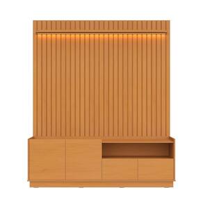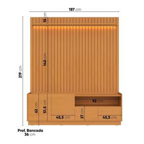 O Conjunto com Painel Ripado é a escolha ideal para quem deseja transformar a sala de estar em um ambiente elegante e altamente sofisticado. Seu design contemporâneo valoriza cada detalhe do espaço. O grande destaque do conjunto é o painel ripado, que adiciona textura, profundidade e um toque arquitetônico ao ambiente. Produzido 100% em MDF, o painel garante excelente acabamento, durabilidade e resistência, além de proporcionar um efeito visual marcante que valoriza a TV e toda a composição da sala. A bancada complementa o conjunto com um design clean e funcional, oferecendo amplo espaço interno para organização de eletrônicos, objetos decorativos e itens do dia a dia. O conjunto conta com passa-fios, facilitando a organização dos cabos e mantendo o visual sempre limpo e sofisticado. Produto Montado: Sim Acabamento: Pintura UV Acabamento da Gaveta: Pintura UV Acabamento da Porta: Pintura UV Acabamento da Prateleira: Pintura UV Acabamento dos Pés: Pintura Acompanha Lâmpada: 01 Acompanha Manual de Instalação: Sim Altura do Conjunto: 219 cm Altura do Painel: 155 cm Altura do Rack: 62 cm Altura dos Pés: 7 cm Altura Máxima dos Pés: 7.0000 Ambiente Principal: Sala de Estar codigo_ean: 7900288321466 Complexidade da Montagem: Alta: deve ser montado por um montador especializado Cor: Marrom Cor do Produto: Marrom Cor Flex: não Cor Interna: Marrom Escala de Brilho: Fosco Escala de Brilho da Gaveta: Semi-Brilho Escala de Brilho da Porta: Semi-Brilho Escala de Brilho da Prateleira: Semi-Brilho Espessura do Painel: 1,5 cm Espessura do Tampo: 15 mm Fixação na Parede: Sim Gaveta com Chave: Não Ideal para TVs até (Polegadas): 75 Informações Complementares: acompanha Kit LED Itens Inclusos: 1 Painel, 1 Rack, Kit de Ferragens e Manual de Montagem. Largura do Conjunto: 187 cm Largura do Painel: 187 cm Largura do Rack: 187 cm Linha ou Coleção: Vitoria Regia Manual de Especificação Técnica: https://product-hub-prd.madeiramadeira.com.br/738674755/documents/0fcc9119-72bc-4eef-b6f1-76417dfa55a23373625540417697932764083.pdf Manual de Montagem e Instalação: https://product-hub-prd.madeiramadeira.com.br/738674755/documents/cd7b7b03-4d6f-43ce-84af-aafd868fcee53373624540417697932604173.pdf Marca: JB Bechara Material da Gaveta: MDF Material da Porta: MDF Material da Prateleira: MDF Material do Puxador da Porta: MDF Material dos Pés: MDF Material Principal: MDF Montagem Flex: não Necessita Montagem: Sim Origem do Produto: Nacional Peso do Painel: 52 kg Peso do Rack: 41,3 kg Peso Máximo por Gaveta: 2 kg Peso Máximo por Prateleira: 2 kg Possui Adega: Não Possui Espelho: Não Possui iluminação: Sim Possui Passa Cabos: Sim Possui Pés: Rodapé Possui Prateleiras: Sim Possui Tomada: Não Possui Vidro: Não Profundidade do Conjunto: 36 cm Profundidade do Rack: 36 cm Quantidade de Gavetas: 02 Gavetas Quantidade de Nichos: 01 Recomendações de Uso, Manutenção e Limpeza: Na remoção da poeira utilize flanela limpa e levemente umedecida. Não exponha à luz solar e locais úmidos. Não encoste o móvel na parede para evitar transmissão de umidade. Sapatas Niveladoras: Não Sistema de Montagem: O produto será entregue desmontado, acompanhado do manual de montagem. Não oferecemos serviço de montagem. A montagem e instalação é por conta do cliente. Recomendamos a contratação de um profissional. Não nos responsabilizamos por danos decorrentes a e Suporte de TV Universal Incluso: Não Tipo de Corrediça da Gaveta: Metálica Telescópica Tipo de Dobradiça/Corrediça da Porta: Metálica Tipo de Puxador da Gaveta: Embutido Tipo de Puxador da Porta: Embutido
