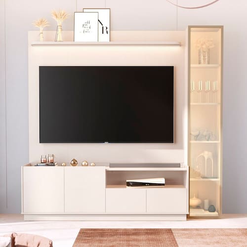Rack com Painel para Tv 75 Polegadas 100% Mdf com Led Vitoria Regia Off White - Bege