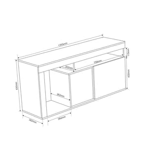 Dimensões Rack: Altura: 63 cm Largura: 135,5 cm Profundidade: 38,2 cm