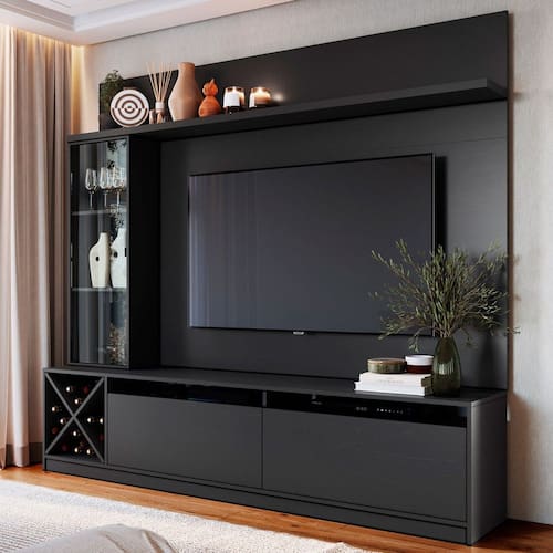 O(a) Rack com Painel para TV Até 50 Polegadas Coliseu 3 Portas Preto - Loja é produzido em MDP na escala de brilho Semi-Brilho, e possui um grau de dificuldade de montagem: Médio.