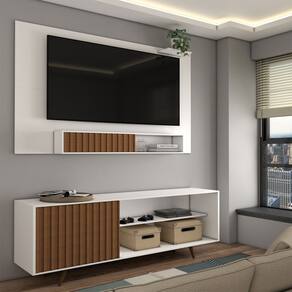 O(a) Rack com Painel para TV Até 55 Polegadas Ripado Branco/Freijó - Loja é produzido em MDP na escala de brilho Fosco, e possui um grau de dificuldade de montagem: Médio.