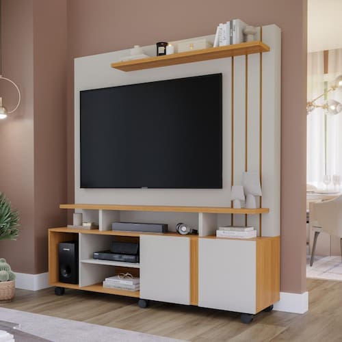 O rack com painel Home Valencia é a escolha perfeita para quem busca praticidade e estilo na decoração da sala de estar! Com capacidade para TVs de até 55", proporciona o suporte ideal para desfrutar dos seus programas favoritos. Possui 2 portas espaçosas para guardar eletrônicos e acessórios, mantendo tudo organizado. Seu design moderno em off white nature traz um toque de elegância ao ambiente. Feito com materiais de alta qualidade, garante resistência e durabilidade. Além disso, o painel integrado ajuda a esconder os fios, mantendo o espaço organizado e livre de bagunças. Com o rack Home Valencia, tenha o equilíbrio perfeito entre funcionalidade e estilo na sua sala de estar. Aproveite momentos de entretenimento com conforto e sofisticação!