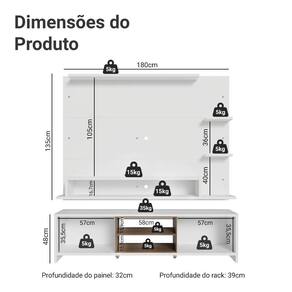 Cor: Branco | Garantia: 3 meses contra defeitos de fabricação | Dimensões - Altura: 48 cm | Dimensões - Largura: 180 cm | Dimensões - Profundidade: 39 cm | Produto (produto): Rack com Painel | Marca: Madesa | Peso aproximado: 81 kg | Material: MDP | Estado de Origem: RS | Conteúdo da embalagem: Um Rack com Painel | Material para Filtro: MDP | Instruções/Cuidados: Utilize um pano limpo, levemente umedecido e seque em seguida a superfície. Não usar produtos químicos ou abrasivos para a limpeza. Recomendamos polir seu móvel com lustra-móveis duas a três vezes por ano. | Produto precisa de Montagem?: Sim | Peso Produto Com Embalagem (Kg): 81,00 | Altura do Produto com Embalagem (cm): 21,30 | Largura Produto Com Embalagem (cm): 47,30 | Comprimento Produto Com Embalagem (cm): 186,40 | Descrição do Tamanho: 48 cm x 180 cm x 39 cm | Nome do Simples no Fornecedor: Rack com Painel para TV até 60 Polegadas 180 cm Branco/Rustic Metz Madesa | Fabricante: Madesa | RBN: Móveis/Móveis para Sala de Estar/Móveis para TV e Som | Materiais do corpo: MDP | Quantidade de caixas de embalagem: 2 | Bullet Point 1: Dimensões: 48 cm altura x 180 cm largura x 39 cm profundidade | Bullet Point 2: O Painel para TV comporta TVs de até 60 polegadas. | Bullet Point 3: O Painel possui espaço para passagem de fios e cabos, ajudando a manter tudo organizado. | Bullet Point 4: Possui acabamento de alta resistência, conservando a beleza do móvel por muito mais tempo. | É Frágil: Não | Quantidade de Itens: 1 | Certificação de teste externa: Sim | Tipo de Pé: Fixo | Precisa de baterias ou pilhas: Não | Número da peça (part_number): MDES020043J5 | Peso do item (item_weight): value=81;unit=kilograms | Dimensões do item P x L x A (item_depth_width_height): depth#value=39;depth#unit=centimeters;height#value=48;height#unit=centimeters;width#value=180;width#unit=centimeters | Exige montagem (is_assembly_required): Sim | Requer montagem (REQUIRES_ASSEMBLY): Sim | Inclui manual de montagem (INCLUDES_ASSEMBLY_MANUAL): Sim | Número do modelo (model_number): MDES020043J5 | is_assembly_required: Sim | Formato do móvel: Rack | Tonalidade: Branco | Tamanho: Médio | included_components: Portas | Cor: Branco/Rustic