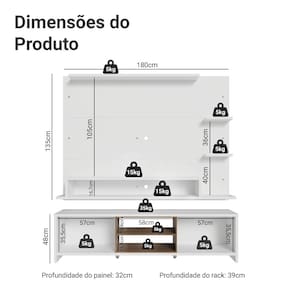 O Painel comporta TVs de até 60 polegadas. Conta com prateleiras e nicho para acomodar o que você quiser. Possui espaço para passagem de fios e cabos, ajudando a manter tudo organizado. Complementando com o Rack Metz, que também oferece excelente espaço interno.