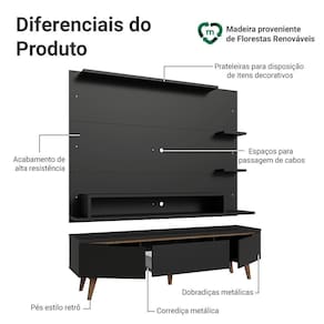 O destaque fica por conta dos pés em madeira maciça no tom marrom, que garantem melhor sustentação, o acabamento de alta resistência na cor preta valoriza o conjunto com um visual moderno e sofisticado.