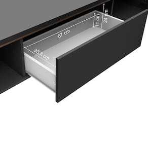 O Painel para TV comporta TVs de até 60 polegadas. Possui espaço para passagem de fios e cabos, ajudando a manter tudo organizado. O Rack oferece excelente espaço interno. Possui duas portas laterais e uma gaveta central com corrediças metálicas, perfeitas para guardar objetos de forma prática.