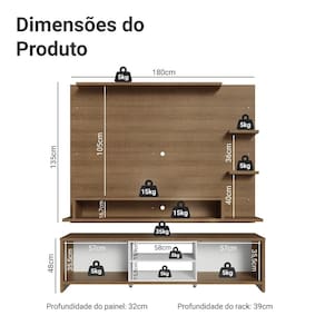 O Painel comporta TVs de até 60 polegadas. Conta com prateleiras e nicho para acomodar o que você quiser. Possui espaço para passagem de fios e cabos, ajudando a manter tudo organizado. Complementando com o Rack Metz, que também oferece excelente espaço interno.