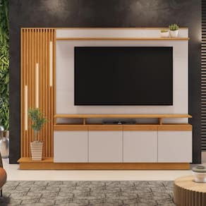 Painel para TV em MDP/MDF com Luminárias LED e Detalhe Ripado Sofisticação e Praticidade em um Só Móvel