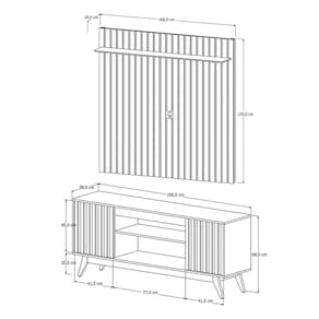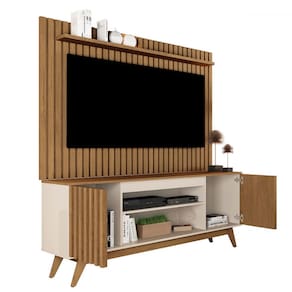 O(a) Rack com Painel para TV Até 65 Polegadas Malibu 2 Portas Ripado Off White/Freijó - Giga Móveis é produzido em MDF e MDP na escala de brilho Semi-Brilho, e possui um grau de dificuldade de montagem: Médio.