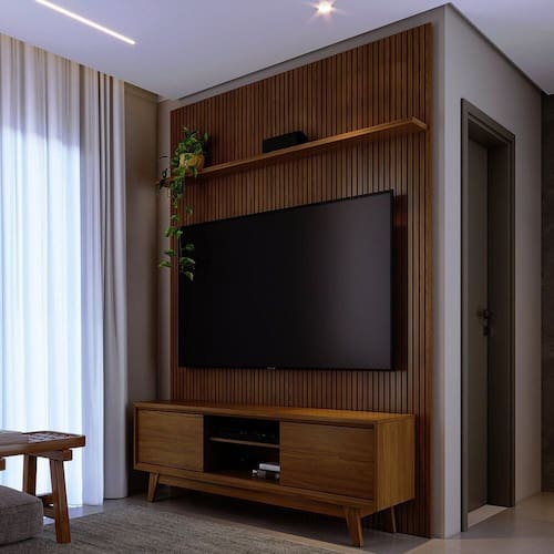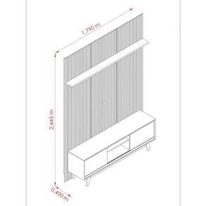 Painel em MDF frisado (baixo relevo), portas deslizantes frisadas que se sobrepõem, pés retrô e estrutura com chapas em MDP e MDF de 1,2, 1,5 e 2,5cm. Portas deslizantes; Painéis em MDP 1,2, 1,5 e 2,5cm. Fixação com minifix. Produto Montado: Sim Acabamento: Pintura UV Acabamento da Porta: Pintura UV Acabamento da Prateleira: Pintura UV Acabamento dos Pés: Pintura Altura do Painel: 244,5 cm Altura do Rack: 58,5 cm Altura dos Pés: 18 cm Altura Máxima dos Pés: 18.0000 Ambiente Principal: Sala de Estar codigo_ean: 7900288112279 Complexidade da Montagem: Média: pode ser montado por mais de uma pessoa e/ou necessite de maior conhecimento para montagem Cor: Cumaru Cor do Produto: Cumaru Escala de Brilho: Semi-Brilho Escala de Brilho da Porta: Semi-Brilho Escala de Brilho da Prateleira: Semi-Brilho Espessura do Painel: 18,5 cm Espessura do Tampo: 15 mm Fixação na Parede: Sim Ideal para TVs até (Polegadas): 65 Itens Inclusos: 1 Rack + 1 Painel, Manual de Montagem e Kit Ferragens Largura do Painel: 179 cm Largura do Rack: 164 cm Manual de Especificação Técnica: https://product-hub-prd.madeiramadeira.com.br/982060/documents/a09e045d-f43f-45f2-b865-09caade086bb275508582617424824081428.pdf Manual de Montagem e Instalação: https://product-hub-prd.madeiramadeira.com.br/982060/documents/c7f64324-aaba-492d-8bc6-04794754de28275508482617424824068103.pdf Marca: Madetec Material da Porta: MDP Material da Prateleira: MDP Material dos Pés: MDP Material Principal: MDF/MDP Necessita Montagem: Sim Peso do Painel: 73 kg Peso do Rack: 33,8 kg Peso Máximo por Prateleira: 5 kg Possui Espelho: Não Possui iluminação: Não Possui Passa Cabos: Sim Possui Pés: 04 Possui Portas: Sim Possui Tomada: Não Possui Vidro: Não Profundidade do Painel: 18.5000 Profundidade do Rack: 36,5 cm Quantidade de Nichos: Não Recomendações de Uso, Manutenção e Limpeza: "Para a limpeza utilizar um pano limpo e seco. Não limpar com produtos abrasivos ou escovas;Não deixar exposta à luz do sol diretamente pois isso irá diminuir a vida útil do produto;Este produto Não é recomendado Para ambientes externos onde possa receber chuva." Sapatas Niveladoras: Não Sistema de Montagem: Girofix Suporte de TV Universal Incluso: Não Tipo de Dobradiça/Corrediça da Porta: Plástica Tipo de Puxador da Porta: Embutido