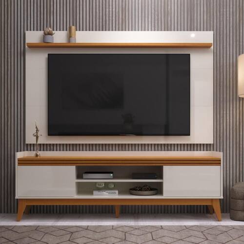 O painel é indicado para TVs de até 70 polegadas e possui 1 prateleira funcional, ideal para decoração ou itens de uso frequente, agregando ainda mais charme e funcionalidade ao ambiente.