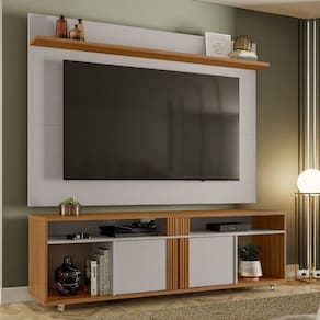 1x Painel para TV até 70 Polegadas com Prateleira 180cm NT 1305 Off White/Freijó Trend Largura: 180 cm Altura: 128,2 cm Peso: 29,66 kg Profundidade: 17,3 cm Necessita Montagem: Sim