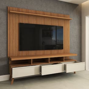 O(a) Rack com Painel para TV Até 72 Polegadas Ripado Urban 3 Gavetas Off White/Freijó - Loja é produzido em MDF e MDP na escala de brilho Semi-Brilho, e possui um grau de dificuldade de montagem: Médio.