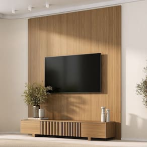 O Rack com painel Aruá traz a essência do estilo japandi, inspirado na simplicidade oriental e no equilíbrio entre forma e função. O rack possui um design baixo com acabamento em Jatobá, ferragens premium, unindo sofisticação e praticidade. Já os painéis são produzidos em chapas de 15mm e oferecem modularidade e personalização do espaço. Versáteis, podem ser utilizados como revestimentos de parede ou painéis de TV, transformando o ambiente com harmonia e elegância. Produto Montado: Sim Acabamento: Finish Foil Acabamento da Porta: Finish Foil Acabamento dos Pés: Finish Foil Altura do Conjunto: 230 cm Altura do Painel: 230 cm Altura do Rack: 31,4 cm Altura dos Pés: 5,5 cm Altura Máxima dos Pés: 5.5000 Ambiente Principal: Sala de Estar codigo_ean: 7900288261113 Complexidade da Montagem: Média: pode ser montado por mais de uma pessoa e/ou necessite de maior conhecimento para montagem Cor: Jatobá Cor do Produto: Jatobá Escala de Brilho: Semi-Fosco Escala de Brilho da Porta: Semi-Fosco Espessura do Painel: 3 cm Espessura do Tampo: 15 mm Fixação na Parede: Sim Ideal para TVs até (Polegadas): 75 Itens Inclusos: 1Painel, 1 Rack , Manual de Montagem e Kit Ferragens Largura do Conjunto: 200 cm Largura do Painel: 200 cm Largura do Rack: 180 cm Linha ou Coleção: Aruá Manual de Montagem e Instalação: https://product-hub-prd.madeiramadeira.com.br/892432447/documents/417b5056-23b3-41ea-95f8-15f7d8b62b5b3272133600517603859673192.pdf Marca: CabeCasa MadeiraMadeira Material da Porta: MDP Material do Puxador da Porta: Plástico Material dos Pés: MDP Material Principal: MDP Necessita Montagem: Sim Origem do Produto: Nacional Peso do Painel: 54,2 kg Peso do Rack: 28,25 kg Possui Espelho: Não Possui iluminação: Não Possui Passa Cabos: Não Possui Pés: 02 Possui Portas: Sim Possui Prateleiras: Não Possui Tomada: Não Possui Vidro: Não Profundidade do Conjunto: 39 cm Profundidade do Painel: 3.0000 Profundidade do Rack: 36 cm Recomendações de Uso, Manutenção e Limpeza: A limpeza deve ser feita com pano macio, levemente umedecido com água e sabão neutro. Em seguida, passe um pano seco para evitar o acúmulo de umidade. Nunca utilize produtos abrasivos, esponjas de aço, alvejantes, álcool em excesso ou solventes, pois esses produtos podem agredir o acabamento e comprometer sua aparência. Sapatas Niveladoras: Não Sistema de Montagem: Parafusos e cavilhas Suporte de TV Universal Incluso: Não Tipo de Dobradiça/Corrediça da Porta: Metálica Tipo de Puxador da Porta: Embutido