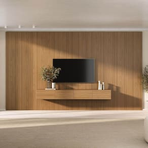 O Rack com painel Aruá traz a essência do estilo japandi, inspirado na simplicidade oriental e no equilíbrio entre forma e função. O rack possui um design baixo com acabamento em Jatobá, ferragens premium, unindo sofisticação e praticidade. Já os painéis são produzidos em chapas de 15mm e oferecem modularidade e personalização do espaço. Versáteis, podem ser utilizados como revestimentos de parede ou painéis de TV, transformando o ambiente com harmonia e elegância. Produto Montado: Sim Acabamento: Finish Foil Acabamento da Porta: Finish Foil Acabamento dos Pés: Finish Foil Altura do Conjunto: 230 cm Altura do Painel: 230 cm Altura do Rack: 32,4 cm Altura dos Pés: 5,5 cm Altura Máxima dos Pés: 5.5000 Ambiente Principal: Sala de Estar codigo_ean: 7900288293596 Complexidade da Montagem: Média: pode ser montado por mais de uma pessoa e/ou necessite de maior conhecimento para montagem Cor: Jatobá Cor do Produto: Jatobá Escala de Brilho: Semi-Fosco Escala de Brilho da Porta: Semi-Fosco Espessura do Painel: 3 cm Espessura do Tampo: 15 mm Fixação na Parede: Sim Itens Inclusos: Painel com Rack, Manual de Montagem e Kit Ferragens Largura do Conjunto: 400 cm Largura do Rack: 210 cm Linha ou Coleção: Aruá Manual de Montagem e Instalação: https://product-hub-prd.madeiramadeira.com.br/909332905/documents/26136d54-a963-4611-89c9-2b9cda4108f03342596342817658318326552.pdf Marca: CabeCasa MadeiraMadeira Material da Porta: MDP Material dos Pés: MDP Material Principal: MDP Montagem Flex: Não Necessita Montagem: Sim Origem do Produto: Nacional Peso do Painel: 108,4 kg Peso do Rack: 31,35 kg Possui Espelho: Não Possui iluminação: Não Possui Passa Cabos: Não Possui Pés: 02 Possui Prateleiras: Não Possui Tomada: Não Possui Vidro: Não Profundidade do Conjunto: 40,5 cm Profundidade do Rack: 37,5 cm Recomendações de Uso, Manutenção e Limpeza: A limpeza deve ser feita com pano macio, levemente umedecido com água e sabão neutro. Em seguida, passe um pano seco para evitar o acúmulo de umidade. Nunca utilize produtos abrasivos, esponjas de aço, alvejantes, álcool em excesso ou solventes, pois esses produtos podem agredir o acabamento e comprometer sua aparência. Sapatas Niveladoras: Não Sistema de Montagem: Parafusos e cavilhas Suporte de TV Universal Incluso: Não Tipo de Dobradiça/Corrediça da Porta: Metálica Tipo de Puxador da Porta: Embutido