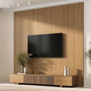 O Rack com painel Aruá traz a essência do estilo japandi, inspirado na simplicidade oriental e no equilíbrio entre forma e função. O rack possui um design baixo com acabamento em Jatobá, ferragens premium, unindo sofisticação e praticidade. Já os painéis são produzidos em chapas de 15mm e oferecem modularidade e personalização do espaço. Versáteis, podem ser utilizados como revestimentos de parede ou painéis de TV, transformando o ambiente com harmonia e elegância. Acabamento: Finish Foil Acabamento da Porta: Finish Foil Acabamento dos Pés: Finish Foil Altura do Conjunto: 230 cm Altura do Painel: 230 cm Altura do Rack: 31,4 cm Altura dos Pés: 5,5 cm Ambiente Principal: Sala de Estar codigo_ean: 7900288261267 Complexidade da Montagem: Média: pode ser montado por mais de uma pessoa e/ou necessite de maior conhecimento para montagem Cor: Jatobá Cor do Produto: Jatobá Escala de Brilho: Semi-Fosco Escala de Brilho da Porta: Semi-Fosco Espessura do Painel: 3 cm Espessura do Tampo: 15 mm Fixação na Parede: Sim Ideal para TVs até (Polegadas): 86 Itens Inclusos: 1 Painel, 1 Rack, Manual de Montagem e Kit Ferragens Largura do Conjunto: 240 cm Largura do Painel: 240 cm Largura do Rack: 210 cm Linha ou Coleção: Aruá Manual de Montagem e Instalação: https://cdn2.madeiramadeira.com.br/atributo/tecno-mobili/3272138-6005-17603863280384.pdf Marca: CabeCasa MadeiraMadeira Material da Porta: MDP Material do Puxador da Porta: Plástico Material dos Pés: MDP Material Principal: MDP Necessita Montagem: Sim Origem do Produto: Nacional Peso do Painel: 64,9 kg Peso do Rack: 32 kg Possui Espelho: Não Possui iluminação: Não Possui Passa Cabos: Não Possui Pés: 02 Possui Portas: 04 Possui Prateleiras: Não Possui Tomada: Não Possui Vidro: Não Profundidade do Conjunto: 39 cm Profundidade do Rack: 36 cm Recomendações de Uso, Manutenção e Limpeza: A limpeza deve ser feita com pano macio, levemente umedecido com água e sabão neutro. Em seguida, passe um pano seco para evitar o acúmulo de umidade. Nunca utilize produtos abrasivos, esponjas de aço, alvejantes, álcool em excesso ou solventes, pois esses produtos podem agredir o acabamento e comprometer sua aparência. Sapatas Niveladoras: Não Sistema de Montagem: Parafusos e cavilhas Suporte de TV Universal Incluso: Não Tipo de Dobradiça/Corrediça da Porta: Metálica Tipo de Puxador da Porta: Embutido