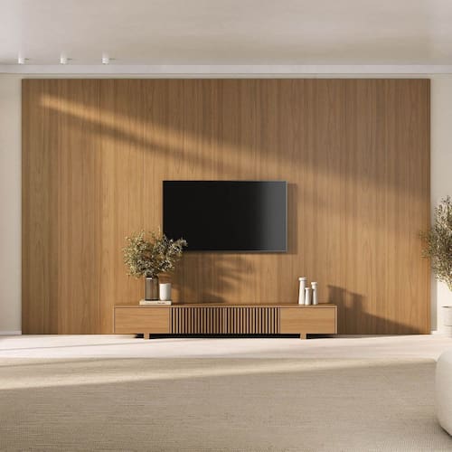 O Rack com painel Aruá traz a essência do estilo japandi, inspirado na simplicidade oriental e no equilíbrio entre forma e função. O rack possui um design baixo com acabamento em Jatobá, ferragens premium, unindo sofisticação e praticidade. Já os painéis são produzidos em chapas de 15mm e oferecem modularidade e personalização do espaço. Versáteis, podem ser utilizados como revestimentos de parede ou painéis de TV, transformando o ambiente com harmonia e elegância. Produto Montado: Sim Acabamento: Finish Foil Acabamento da Porta: Finish Foil Acabamento dos Pés: Finish Foil Altura do Conjunto: 250 cm Altura do Painel: 250 cm Altura do Rack: 31,4 cm Altura dos Pés: 5,5 cm Altura Máxima dos Pés: 5.5000 Ambiente Principal: Sala de Estar codigo_ean: 7900288293664 Complexidade da Montagem: Média: pode ser montado por mais de uma pessoa e/ou necessite de maior conhecimento para montagem Cor: Jatobá Cor do Produto: Jatobá Escala de Brilho: Semi-Fosco Escala de Brilho da Porta: Semi-Fosco Espessura do Painel: 3 cm Espessura do Tampo: 15 mm Fixação na Parede: Sim Itens Inclusos: Painel com Rack, Manual de Montagem e Kit Ferragens Largura do Conjunto: 400 cm Largura do Rack: 210 cm Linha ou Coleção: Aruá Manual de Montagem e Instalação: https://product-hub-prd.madeiramadeira.com.br/232778699/documents/7a38a9e0-3f56-466f-b3db-84951fb2f6913342666342817658331579051.pdf Marca: CabeCasa MadeiraMadeira Material da Porta: MDP Material dos Pés: MDP Material Principal: MDP Montagem Flex: Não Necessita Montagem: Sim Origem do Produto: Nacional Peso do Painel: 116,6 kg Peso do Rack: 32 kg Possui Espelho: Não Possui iluminação: Não Possui Passa Cabos: Não Possui Pés: 02 Possui Prateleiras: Não Possui Tomada: Não Possui Vidro: Não Profundidade do Conjunto: 39 cm Profundidade do Rack: 36 cm Recomendações de Uso, Manutenção e Limpeza: A limpeza deve ser feita com pano macio, levemente umedecido com água e sabão neutro. Em seguida, passe um pano seco para evitar o acúmulo de umidade. Nunca utilize produtos abrasivos, esponjas de aço, alvejantes, álcool em excesso ou solventes, pois esses produtos podem agredir o acabamento e comprometer sua aparência. Sapatas Niveladoras: Não Sistema de Montagem: Parafusos e cavilhas Suporte de TV Universal Incluso: Não Tipo de Dobradiça/Corrediça da Porta: Metálica Tipo de Puxador da Porta: Embutido