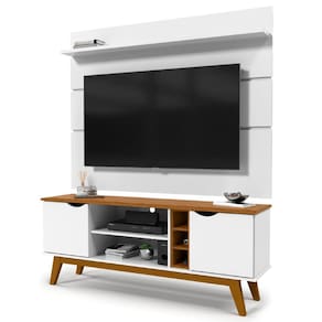 Para durar por muitos anos em sua sala, ambas as peças tem sua estrutura em MDP e acabamento em pintura UV. O rack tem os puxadores cava e os pés em madeira maciça pinus. O painel tem 160cm de largura, 116cm de altura e 18cm de profundidade em suas medidas, enquanto o rack tem 64cm de altura, 38cm de profundidade e a mesma medida do painel na largura.
