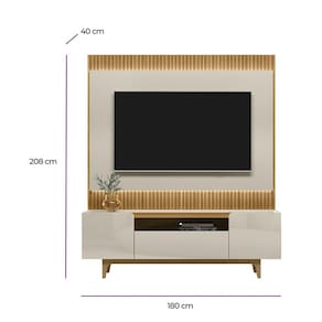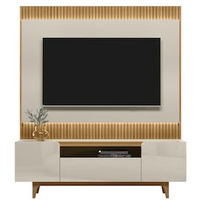 Características: 3 Portas sendo uma basculante com pistão á gás Espaço para decoração Estrutura em MDF e MDP 15mm Dobradiças metálicas Ideal para TVs de até 70 polegadas Painel com detalhe chanfrado Pés em Madeira Maciça Possui fita de LED Tampo de 25mm