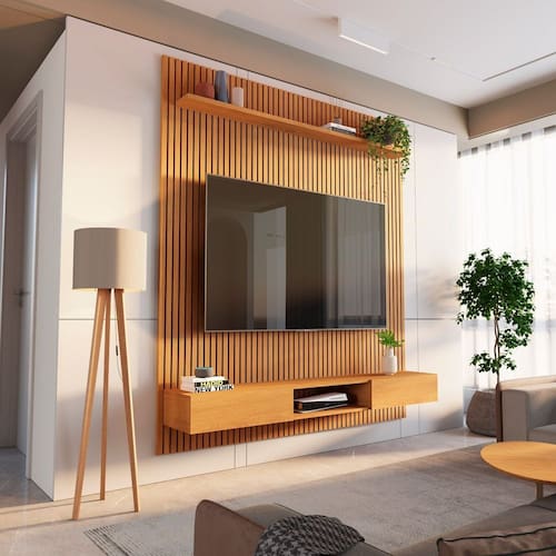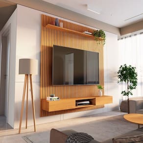 O Rack com Painel Aloe une elegância e funcionalidade. Com painel ripado em relevo de 15 mm, estrutura em MDF 15mm e portas com dobradiças com amortecimento, oferece sofisticação e praticidade. Disponível para TVs de até 72” e em acabamentos amadeirados Âmbar e Marrom, que seguem as tendências atuais do design. Produto Montado: Sim Acabamento: Pintura UV Acabamento da Porta: Impressão Acabamento da Prateleira: Impressão Acompanha Manual de Instalação: Sim Altura do Conjunto: 250 cm Altura do Painel: 250 cm Altura do Rack: 15,5 cm Ambiente Principal: Sala de Estar codigo_ean: 7900288231079 Complexidade da Montagem: Média: pode ser montado por mais de uma pessoa e/ou necessite de maior conhecimento para montagem Cor: Marrom Cor do Produto: Marrom Cor Interna: Marrom Escala de Brilho: Semi-Brilho Escala de Brilho da Porta: Semi-Brilho Escala de Brilho da Prateleira: Semi-Brilho Espessura do Painel: 20,5 cm Espessura do Tampo: 15 mm Fixação na Parede: Sim Ideal para TVs até (Polegadas): 72 Itens Inclusos: 1 Rack, Manual de Montagem e Kit Ferragens Largura do Conjunto: 185,5 cm Largura do Painel: 185,5 cm Largura do Rack: 178 cm Linha ou Coleção: Aloe Manual de Montagem e Instalação: https://product-hub-prd.madeiramadeira.com.br/217551749/documents/b0487d47-6cb2-474f-9f07-cdf9748dda183215658600517582234836764.pdf Marca: CabeCasa MadeiraMadeira Material da Porta: MDF Material da Prateleira: MDF Material do Puxador da Porta: MDF Material Principal: MDF Necessita Montagem: Sim Origem do Produto: Nacional Peso do Painel: 75,03 kg Peso do Rack: 17,02 kg Peso Máximo por Prateleira: 5 kg Possui Adega: Não Possui Espelho: Não Possui iluminação: Não Possui Passa Cabos: Sim Possui Pés: Suspenso Possui Portas: Sim Possui Prateleiras: Sim Possui Tomada: Não Possui Vidro: Não Profundidade do Conjunto: 36,2 cm Profundidade do Painel: 20.5000 Profundidade do Rack: 31,5 cm Quantidade de Nichos: 01 Recomendações de Uso, Manutenção e Limpeza: A limpeza deve ser feita com pano macio, levemente umedecido com água e sabão neutro. Em seguida, passe um pano seco para evitar o acúmulo de umidade. Nunca utilize produtos abrasivos, esponjas de aço, alvejantes, álcool em excesso ou solventes, pois esses produtos podem agredir o acabamento e comprometer sua aparência. Sistema de Montagem: Parafusos, cavilhas e minifix Suporte de TV Universal Incluso: Não Tipo de Dobradiça/Corrediça da Porta: Metálica Tipo de Puxador da Porta: Embutido