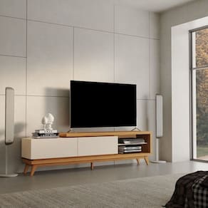 1x Rack para Tv's até 84 Polegadas Nobre 220cm 2 Gavetas Carvalho/Off-White