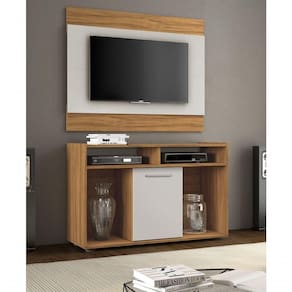 Rack Com Painel Show Freijó Com Off White - Notável Compacto, o Conjunto Show - Notável, é perfeito para os espaço pequenos. Além de ser completo para as necessidades da sua sala de TV, acompanha o painel e o rack, que irão acomodar perfeitamente seus aparelhos eletrônicos, e itens decorativos. Possui também uma porta, para auxiliar na organização dos itens, que precisar ficar escondidinhos.Dimensões do Produto montado-Painel:Altura: 85 cmLargura: 105 cmProfundidade: 35 cmObservações:- Ideal para TV de até 43 polegadas;- Pintura Ultravioleta com acabamento amadeirado na cor freijó trend.- Pintura Ultravioleta com acabamento brilho na cor off white.Dimensões do Produto montado-Rack:Altura: 68 cmLargura: 106 cmProfundidade: 36 cmObservações:- Porta articulada;- Puxador em alumínio;- Ideal para TV de até 43 polegadas;- Pintura Ultravioleta com acabamento amadeirado na cor freijó trend.- Pintura Ultravioleta com acabamento brilho na cor off white.