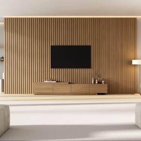 O Rack com painel Aruá traz a essência do estilo japandi, inspirado na simplicidade oriental e no equilíbrio entre forma e função. O rack possui um design baixo com acabamento em Jatobá, ferragens premium, unindo sofisticação e praticidade. Já os painéis são produzidos em chapas de 15mm e oferecem modularidade e personalização do espaço. Versáteis, podem ser utilizados como revestimentos de parede ou painéis de TV, transformando o ambiente com harmonia e elegância. Produto Montado: Sim Acabamento: Finish Foil Acabamento da Porta: Finish Foil Acabamento dos Pés: Finish Foil Altura do Conjunto: 250 cm Altura do Painel: 250 cm Altura do Rack: 35,7 cm Altura dos Pés: 5.5 Altura Máxima dos Pés: 5.5000 Ambiente Principal: Sala de Estar codigo_ean: 7900288310118 Complexidade da Montagem: Média: pode ser montado por mais de uma pessoa e/ou necessite de maior conhecimento para montagem Cor: Jatobá Cor do Produto: Jatobá Escala de Brilho: Semi-Fosco Escala de Brilho da Porta: Semi-Fosco Espessura do Painel: 4,5 cm Espessura do Tampo: 40 mm Fixação na Parede: Sim Itens Inclusos: Painel com Rack, Manual de Montagem e Kit Ferragens Largura do Conjunto: 400 cm Largura do Rack: 210 cm Linha ou Coleção: Aruá Manual de Montagem e Instalação: https://product-hub-prd.madeiramadeira.com.br/475378986/documents/e0b50e92-2c07-47f1-9fde-ad0f6103caad3356591600517684217665989.pdf Marca: CabeCasa MadeiraMadeira Material da Porta: MDP Material dos Pés: MDP Material Principal: MDP Montagem Flex: Sim, aparador monta o lado esquerdo e direito Necessita Montagem: Sim Origem do Produto: Nacional Peso do Painel: 196,25 kg Peso do Rack: 44,45 kg Possui Espelho: Não Possui iluminação: Não Possui Passa Cabos: Não Possui Pés: 01 Possui Prateleiras: Não Possui Tomada: Não Possui Vidro: Não Profundidade do Conjunto: 42 cm Profundidade do Rack: 37,5 cm Recomendações de Uso, Manutenção e Limpeza: A limpeza deve ser feita com pano macio, levemente umedecido com água e sabão neutro. Em seguida, passe um pano seco para evitar o acúmulo de umidade. Nunca utilize produtos abrasivos, esponjas de aço, alvejantes, álcool em excesso ou solventes, pois esses produtos podem agredir o acabamento e comprometer sua aparência. Sapatas Niveladoras: Não Sistema de Montagem: Parafusos e cavilhas Suporte de TV Universal Incluso: Não Tipo de Dobradiça/Corrediça da Porta: Metálica Tipo de Porta: Basculante Tipo de Puxador da Porta: Embutido