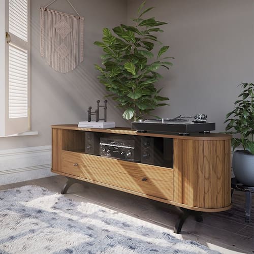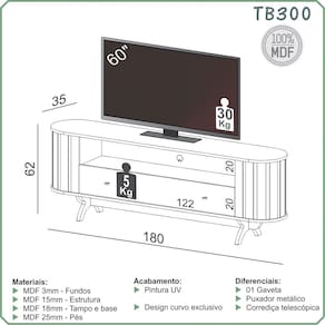Rack Curvo TB300 para TV Até 60 Polegadas com 01 Gaveta 180cm Freijó Preto Fosco Dalla Costa - Rack para TV até 60 Polegadas