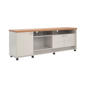Rack para TV até 75 polegadas Dallas com 3 Portas e Rodízios Off White/Jequitibá - Lukaliam