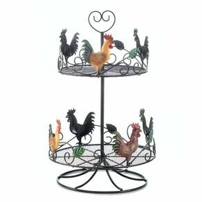 - As possibilidades são infinitas quando você tem esta charmosa prateleira circular de galo na bancada da cozinha. Encha-o com especiarias ou qualquer coisa que você queira organizada e com uma aparência elegante. É feito de ferro e a prateleira inferior é mais larga que a superior. Você vai adorar os galos coloridos e os lindos floreios.