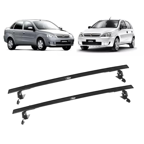 Rack de teto aluminio corsa sedan e hatch frente montana A vhip desenvolveu esse rack sob rigoroso controle de qualidade, cujo processo industrial, segue os padrões de segurança, com acompanhamento e supervisão técnica contínua, visando proporcionar ao consumidor, uma excelente alternativa no transporte de bagagens ou cargas. Especificação técnica: Projetado e desenvolvido para suportar até 50 kg de peso máximo, desde que distribuído de forma uniforme e equilibrada; Manual de instruções, para orientar a montagem, sua capacidade de transporte, regras de utilização e outros informes; Não amassa e nem risca o veículo; Cor preto; Fabricado em alumínio; Não exige furações; Fácil instalação; Ótimo acabamento; Excelente resistência. Ficha técnica: Fabricante: vhip; Material: alumínio; Capacidade de carga do rack: 50kg distribuídos Cor: preto. Conteúdo da embalagem: 2 racks dianteiro + traseiro ; Kit instalação; Manual.