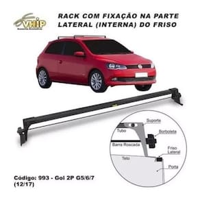 Rack de teto gol g5 g6 g7 - 2012 a 2023 - fixado no friso Temos o prazer de apresentar mais um produto de extrema qualidade, com um ótimo preço. Descrição do produto: Fixado entre portas Desenvolvido sob rigoroso controle de qualidade, cujo processo industrial, segue os padrões de segurança, com acompanhamento e supervisão técnica contínua, visando proporcionar ao consumidor, uma excelente alternativa no transporte de bagagens ou cargas. Instalado transversalmente de um lado para o outro . O rack possui encaixes perfeitos e ótimo acabamento. Descrição técnica: - projetado e desenvolvido para suportar até 35 kg de peso máximo, desde que distribuído de forma uniforme e equilibrada. - manual de instruções, para orientar a montagem, sua capacidade de transporte, regras de utilização e outros informes. - não amassa e nem risca o veículo - garras e suporte em ferro - não exige furações - fixação nas aberturas do friso do teto do veiculo. - fácil instalação - ótimo acabamento - excelente resistência Cor: Disponível na cor preto Aplicação: no friso Montadora: vw Modelo: g5 g6 g7 Conteúdo da embalagem: 1 - rack dianteiro 1 - rack traseiro 1 - manual de instalação Importante: Não nos responsabilizamos pelo mal uso do produto e nem pela instalação. Procure um especializado : 3 meses direto com o fabricante. Nosso horário de atendimento é de segunda a sexta das 9 as 17 horas excetos feriados . Boa compra... Atenção: as compras realizadas em nome de pessoa jurídica estão sujeitas à cobrança de icms, conforme protocolo icms 41, de 4 de abril de 2008. Caso você tenha dúvidas sobre o percentual a ser aplicado, consulte a cláusula segunda, 1 do referido protocolo. Marca: Não Informado