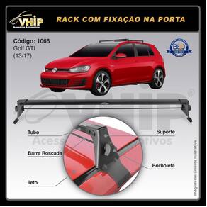 Rack de Teto Suporte Bagageiro Vw Golf 2013 ate 2017 A VHIP desenvolveu esse rack sob rigoroso controle de qualidade, cujo processo industrial, segue os padrÃes de seguranÃa, com acompanhamento e supervisÃo tÃcnica contÃnua, visando proporcionar ao consumidor, uma excelente alternativa no transporte de bagagens ou cargas.  Especificaãão TÃCNICA:  Projetado e desenvolvido para suportar atà 45 kg de peso mÃximo, desde que distribuÃdo de forma uniforme e equilibrada;  Manual de instruÃÃes, para orientar a montagem, sua capacidade de transporte, regras de utilizaÃÃo e outros informes;  NÃo amassa e nem risca o veÃculo;  Cor preto;  Fabricado em AÃo;  NÃo exige furaÃÃes;  FÃcil instalaÃÃo;  Ãtimo acabamento;  Excelente resistÃncia.  FICHA TÃCNICA:  Fabricante: VHIP;  Material: Ferro Tubular / AÃo;  Capacidade de carga do rack: 45kg distribuÃdos  Cor: Preto.  Conteãdo DA EMBALAGEM:  2 Racks dianteiro + traseiro ;  Kit InstalaÃÃo;  Manual.