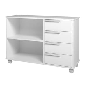 Características: Rack Marca: BRV Móveis Modelo: BSE 02-BRV Estrutura: MDP 15mm Tipo de Acabamento: BP Produto Suporta até: 31kg Quantidade de Gavetas: 04 Peso Suportado por Gavetas: 2kg Tipo de Corrediça: 300mm com Roldana Material da Corrediça: Aço Pintado Quantidade de Prateleiras: 01 Peso Suportado por Prateleiras: 6kg Quantidade de Nichos: 01 Quantidade de Pés: 04 Tipo dos Pés: Rodizio 40mm Material dos Pés: Polipropileno Quantidade de Puxadores: 04 Tipo de Puxador: 180mm Material do Puxador: Madeira Pintado
