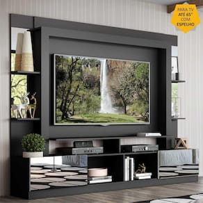O Rack Estante com Painel TV 65" e Espelho Oslo Multimóveis é perfeito para você deixar seu ambiente organizado e muito bem decorado. Produzido em MDP, que garante maior durabilidade e facilidade na limpeza, além de um acabamento superior, possui 2 portas articuladas com um excelente espaço interno para organizar seus pertences, prateleiras para que você possa personalizar a decoração e nichos para acomodar todos os equipamentos. Os detalhes com espelhos nas portas e prateleiras deixam o móvel mais requintado, criando um ambiente moderno e charmoso. Os espelhos são de vidro (o que evita que a imagem fique distorcida) e lapidados, ou seja, passam por um processo para que as bordas não fiquem cortantes, o que garante maior segurança. O painel para TV de até 65 (suporta até 30kg) possui espaçamento para passagem dos fios, que permite deixar os cabos mais organizados. Uma sala de estar moderna, aconchegante e linda para receber os amigos e curtir os melhores filmes e séries.