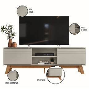 Com prateleiras e compartimentos amplos, oferece espaco para dispositivos de entretenimento, consoles de jogos, DVDs e outros itens, mantendo a sala organizada e elegante.