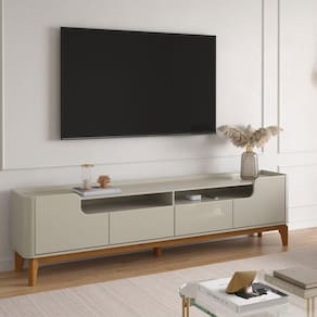Rack Estante Flip 4 Portas Para Tv Até 70 Polegadas Off White Com design contemporâneo e estrutura bem planejada, o Rack Flip é ideal para quem busca um móvel funcional e elegante para a sala de ível com TVs de até 70 polegadas, o modelo conta com nichos abertos para eletrônicos e objetos decorativos, além de portas amplas que garantem excelente espaço interno para organizaçã estrutura com pés em madeira proporciona firmeza e um toque natural, tornando o Rack Flip uma peça versátil que valoriza qualquer ambiente, reforçando o visual clean e ões:Altura: 58cmLargura: 180cmProfundidade: 38cmObservações:- Design moderno com frentes usinadas e visual clean- Ideal para TVs de até 70 polegadas- Nichos abertos e portas com amplo espaço interno- Pés em madeira resistentes e com toque natural- Perfeito para salas modernas e ambientes integrados