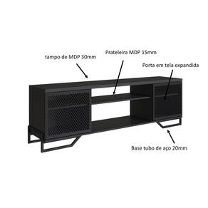 CARACTERÍSTICAS TÉCNICAS: - Estrutura metálica resistente; - Cor: Preto; - Tampo e prateleiras em MDP de 20mm; - 2 portas teladas em metal; - Pés metálicos fixos; - Design industrial sofisticado; - Suporta até 30 kg.