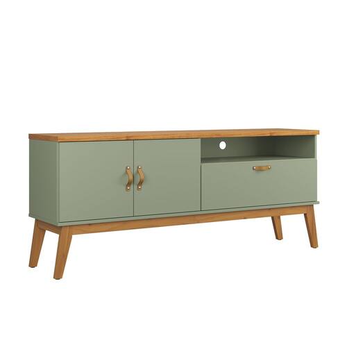 A estrutura com pés em madeira garante firmeza, resistência e um toque natural, tornando o Rack Sirius uma peça versátil e elegante.